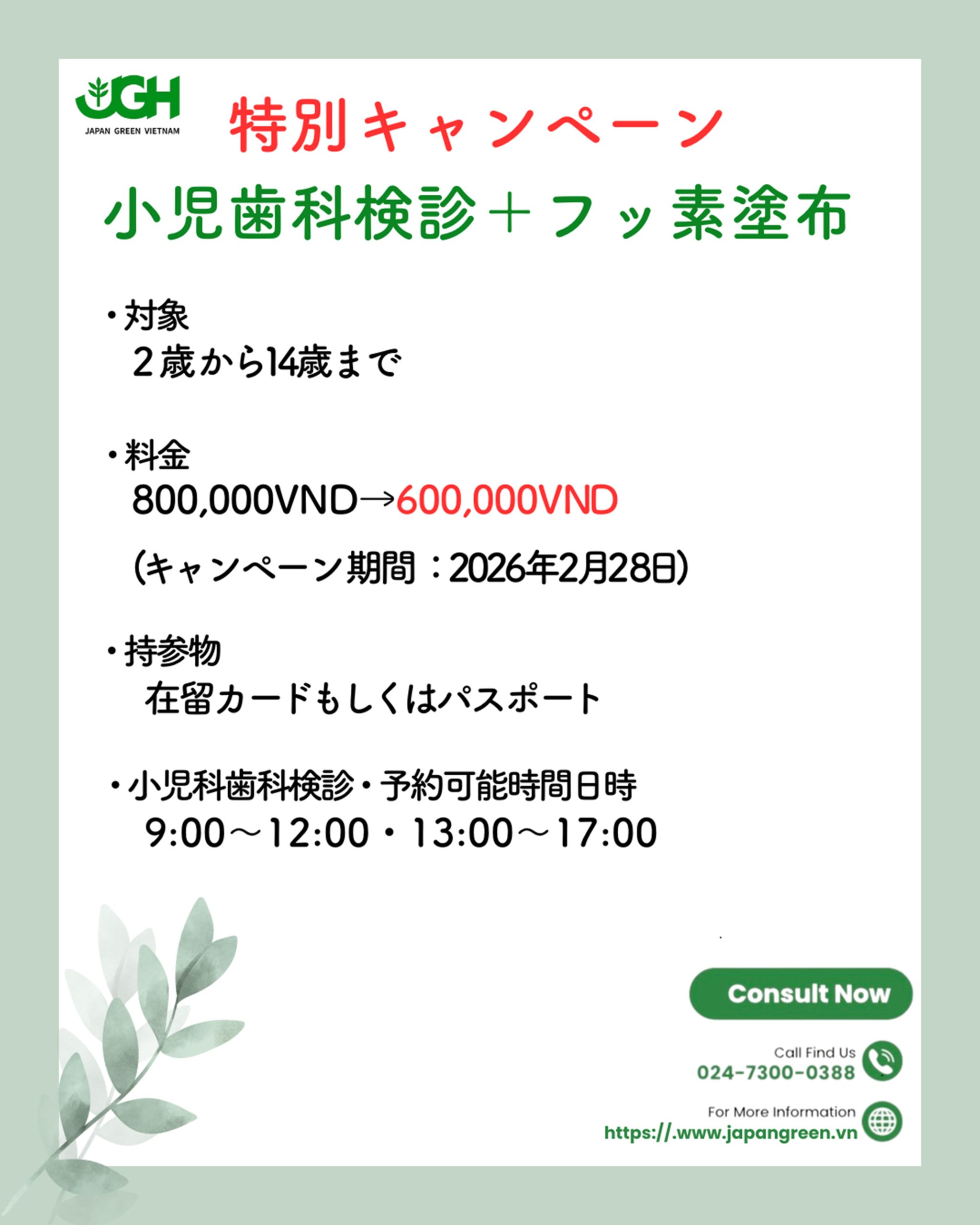 通常価格800,000VNDを600,000VNDにてご提供しております。